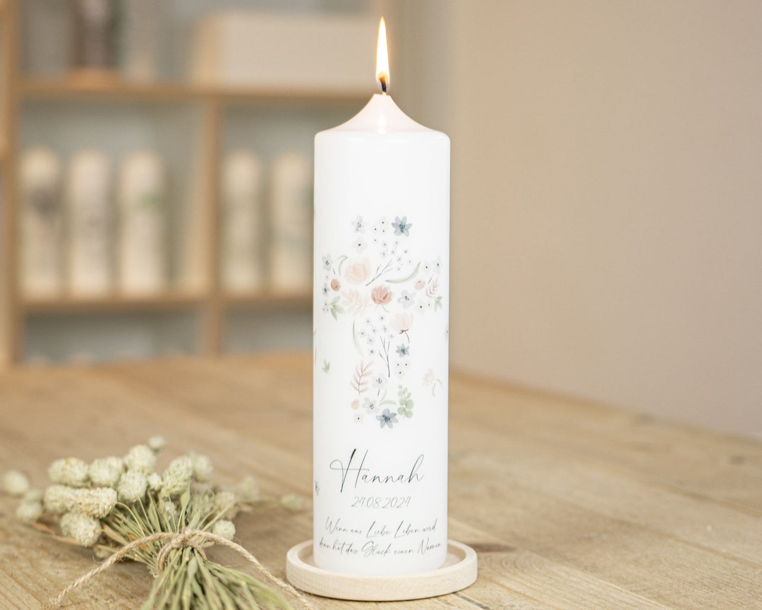 Christening Candle Flowers Cross Hannah My Baptism Etsy UK