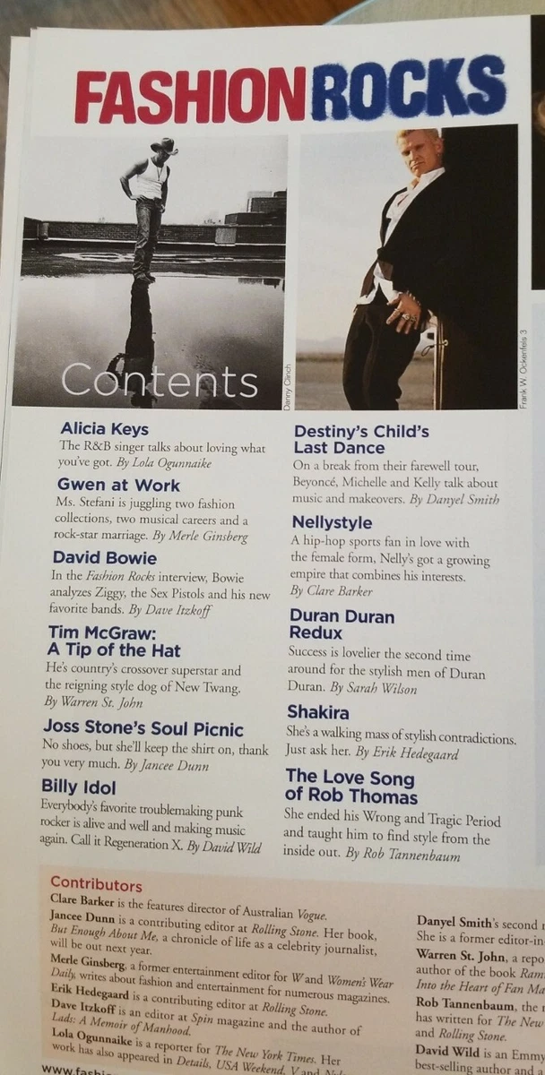 David Bowie Alicia Keys Gwen Stefani Duran Joss Stone Billy Idol