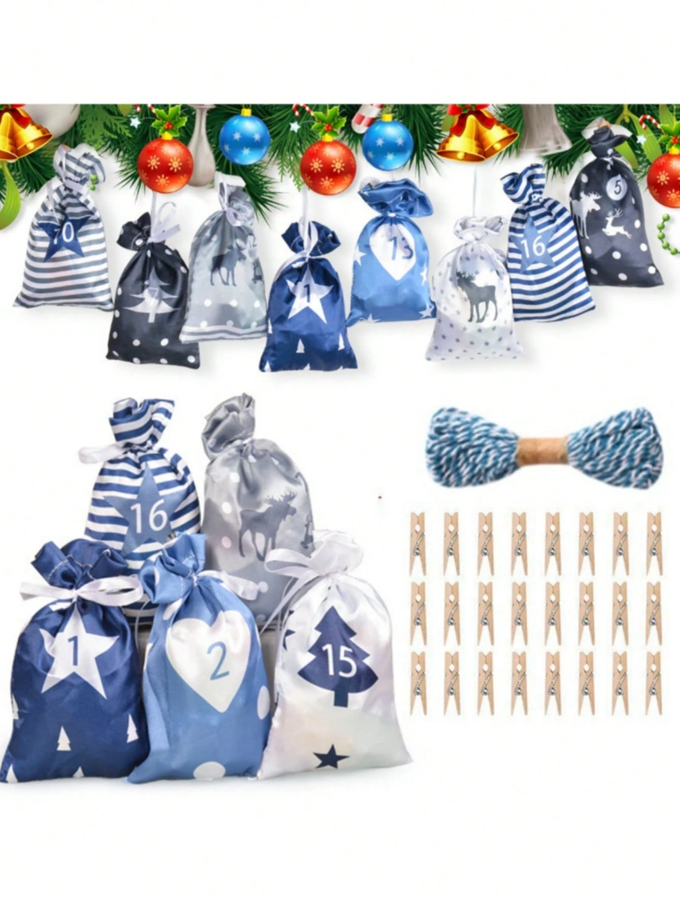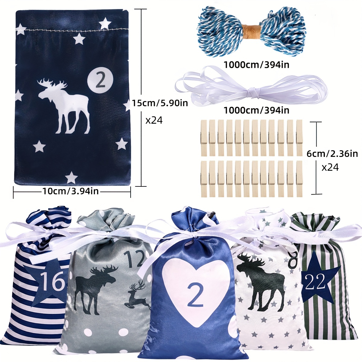 24 Christmas Gift Bags,DIY calendar hanging bags Halloween candy