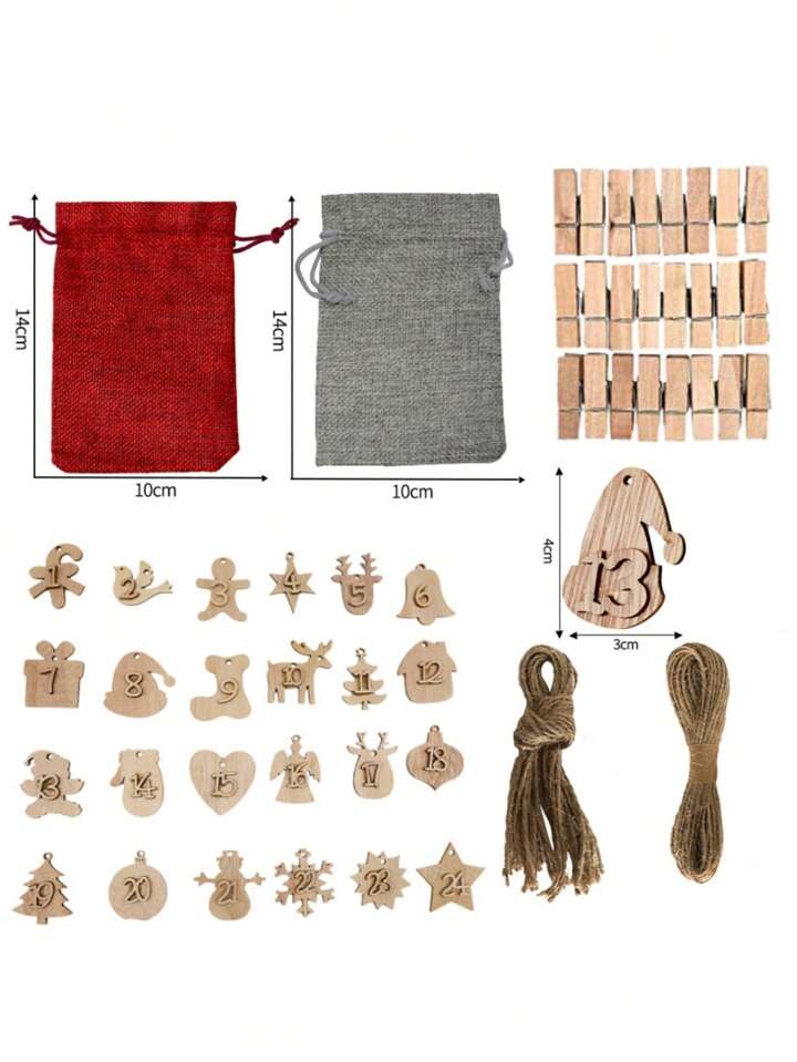 24PCS bag set,Christmas Wooden hanging tag countdown calendar